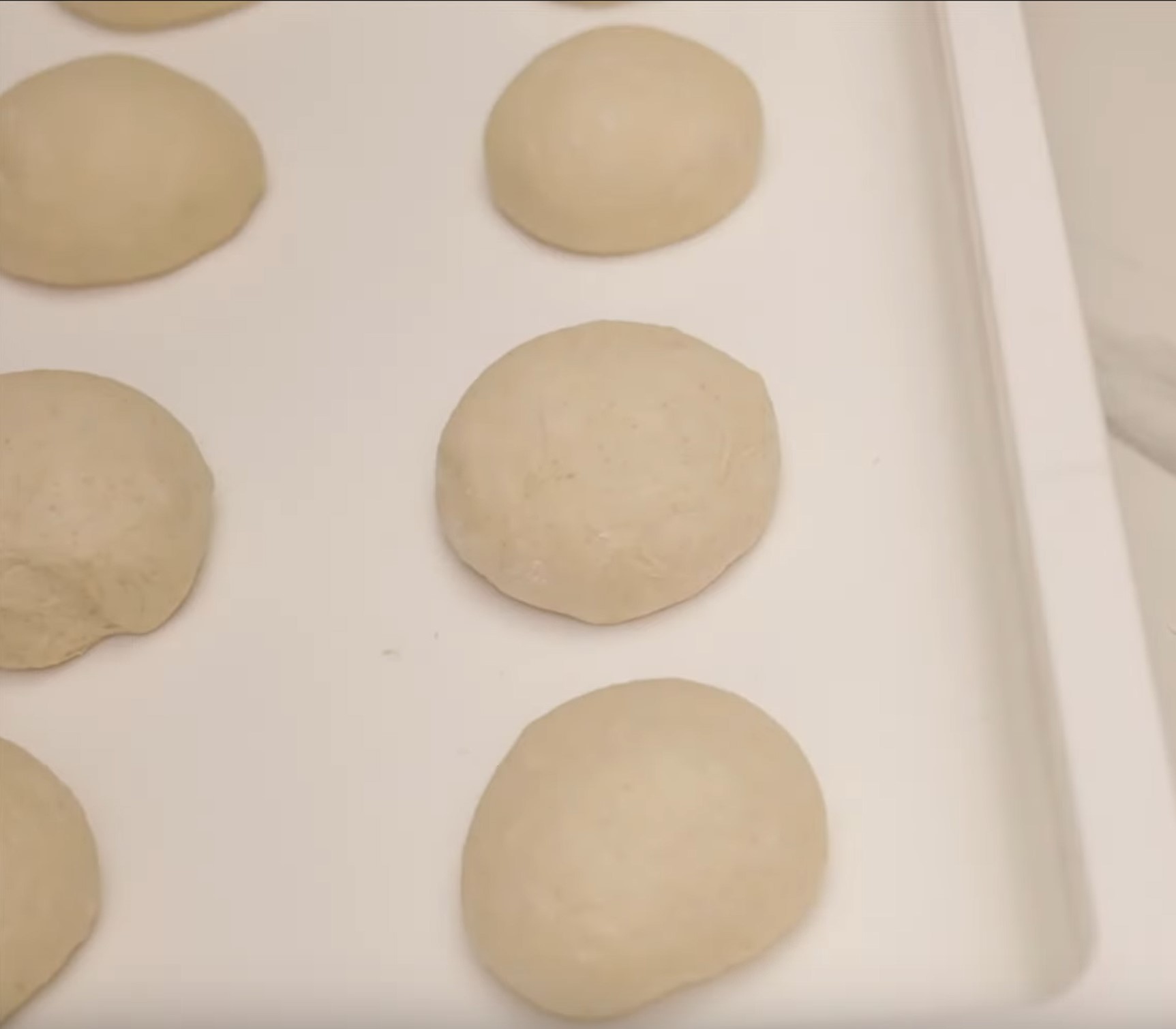 5. Once the first rest if over, cut the dough in 4 parts and roll each part into a ball (see video). Either wrap each dough ball in plastic or wax wrap or put in am oiled container and cover (this our preferred method).